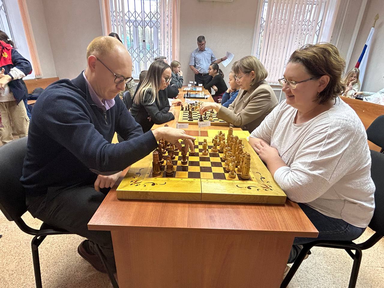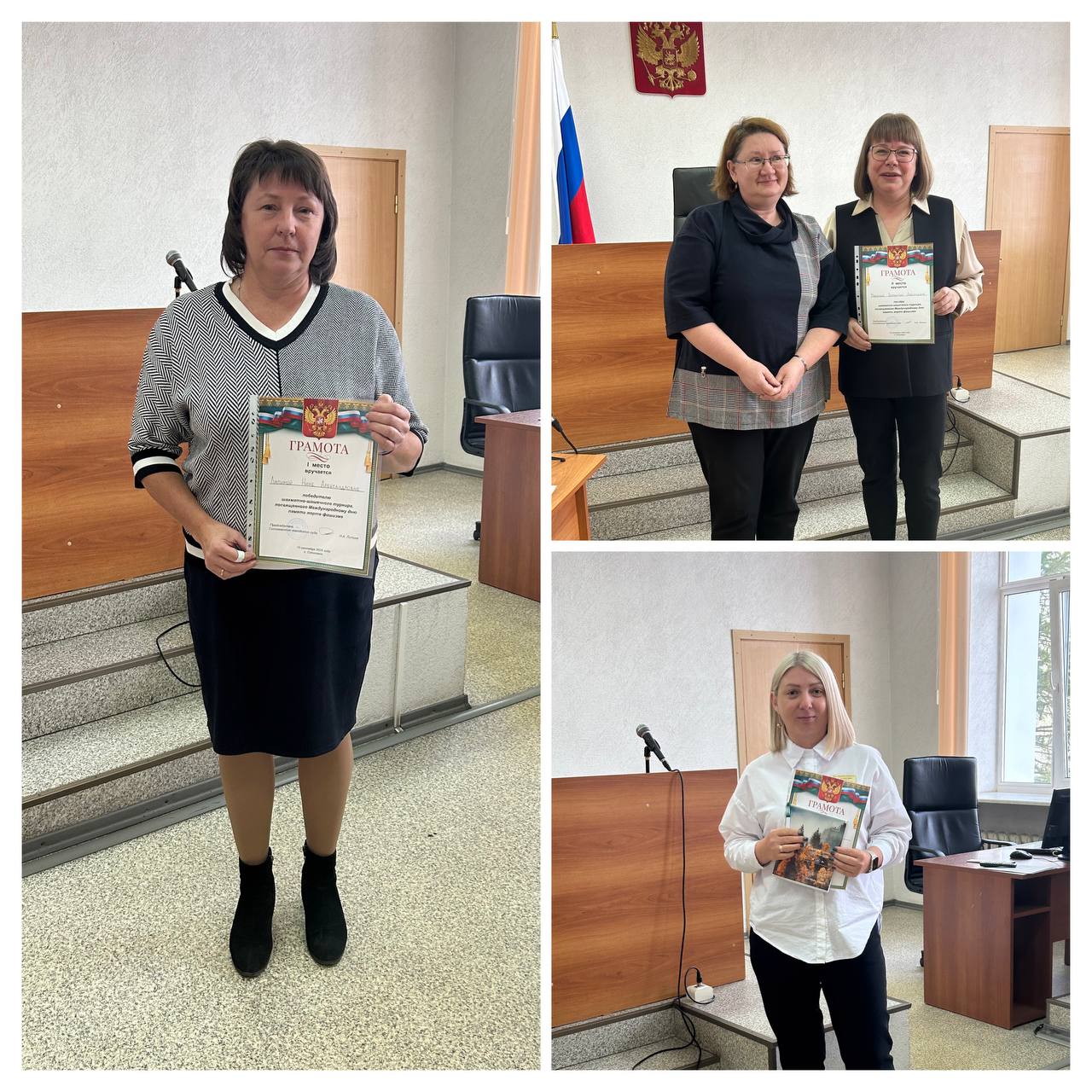 Ежегодно каждое второе воскресенье сентября в России и в других странах мира отмечается Международный день памяти жертв фашизма, посвященный всем, кто прямо или косвенно пострадал от действий нацистской Германии и её союзников во время Второй мировой войны. Этот день был создан для того, чтобы не дать трагедии повториться, а жестокой и губительной идеологии вновь захватить умы людей. Поэтому в этот день вспоминают не только тех, кто защищал Родину с оружием в руках, но и обычных людей, погибших от рук захватчиков. В преддверии Международного дня памяти жертв фашизма в Соликамском городском суде состоялся шахматно-шашечный турнир, в котором приняли участие судьи и сотрудники Соликамского городского суда, а также члены их семей, сотрудники и мировые судьи Соликамского судебного района. В течение нескольких часов за игровыми столами шли упорные шашечные и шахматные бои. Сражаясь со своими соперниками, все участники показали, что игра не только в шахматы, но и шашки очень разнообразна и не так проста, как может показаться с первого взгляда. Игры вызвали большой интерес и у болельщиков, которые, не удержавшись, сели за игровые столы и провели несколько дружеских игр. Самообладание, логика, терпение и воля к победе привели победителей к заветной цели. В младшей группе дети – шашки: 1 место – Шункова В. 2 место – Гаджиев Д.