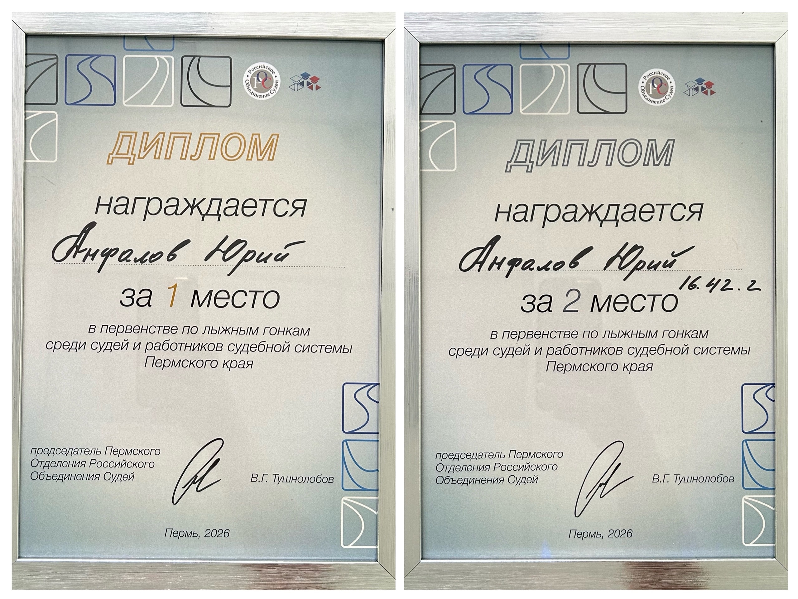 15 марта 2026 года на базе «Динамо» г. Пермь состоялись традиционные лыжные гонки среди действующих судей, судей, пребывающих в отставке, работников судов и членов их семей. Организаторами спортивного мероприятия выступили Совет судей Пермского края и Пермское региональное отделение Общероссийской общественной организации «Российское объединение судей». Соревнования проводились среди мужчин (дистанция 5 км) и женщин (дистанция 3 км). Было разыграно 8 комплектов медалей в 4 возрастных категориях: до 40 лет, от 40 до 50 лет, от 50 до 60 лет, от 60 лет и старше. Для детей и болельщиков были организованы «Веселые старты». От Соликамского городского округа Пермского края принимали участие: судья Анфалов Юрий Михайлович на дистанции 5 км среди мужчин, где занял первое почетное место!