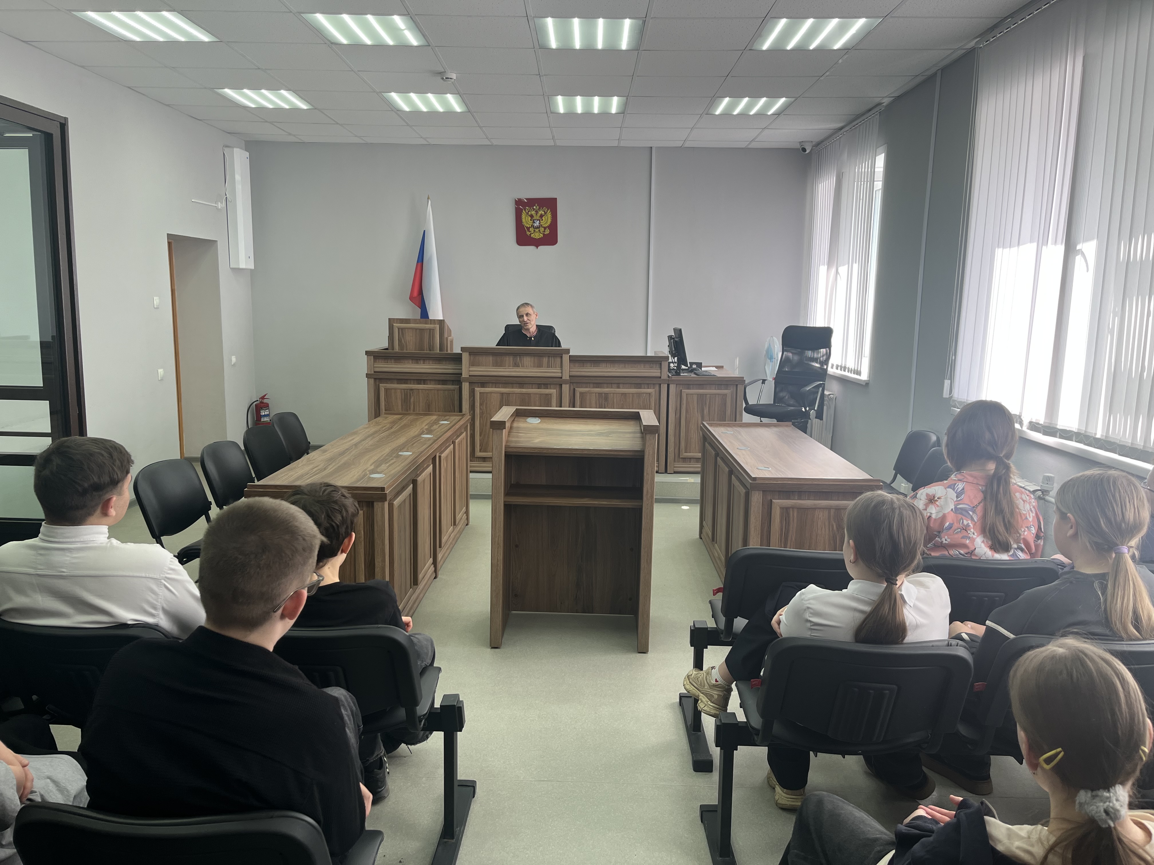 В ходе беседы Юрий Михайлович отметил, почему важно знать свои права и какова роль закона в жизни каждого из нас, рассказал о делах в отношении несовершеннолетних, приведя примеры из судебной практики суда. Оживленной получилась часть беседы, где обсуждались ситуации из жизни подростков: от ответственности за поступки в интернете до прав и обязанностей школьников. У ребят была возможность быть и участниками судебного заседания при рассмотрении представления начальника исправительного учреждения о замене осужденному принудительных работ лишением свободы.